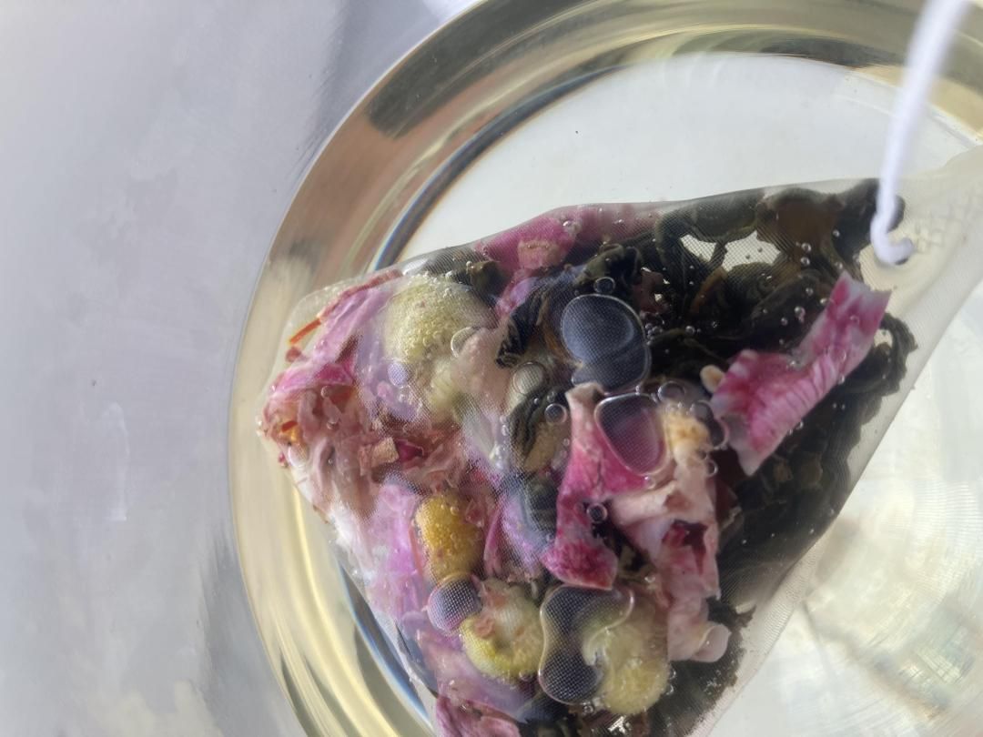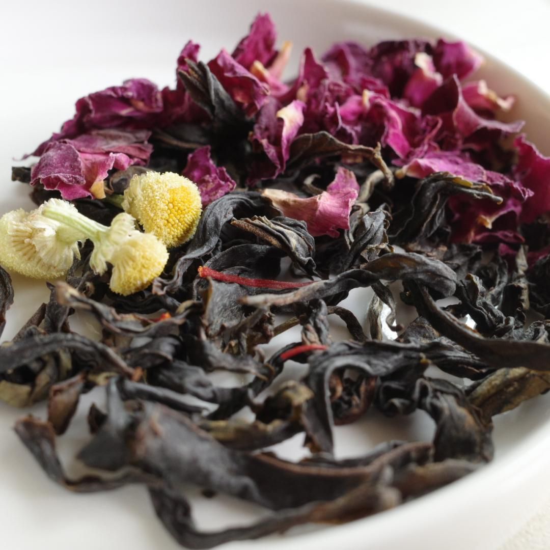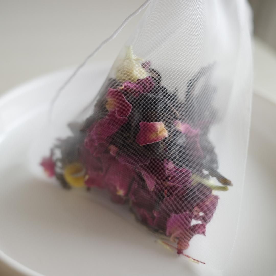 上品ながら重厚な香りをもつ”センティフォーリアローズ”と「薬剤師のバラ」とも言われる”ローズガリカ”の花びらを使用。香水にも使用されているバラの芳醇な香りが広がります。ピンクローズと比べしっかりとした渋み。全体の味わいを引き締めます。優雅な香りは不安や緊張で張り詰めたココロを穏やかな気持ちへと導いてくれます。