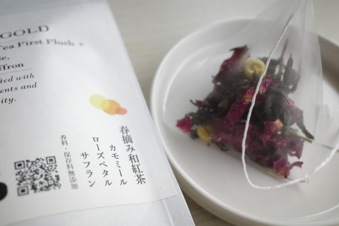 茶(茨城県)、ローズペタル、有機カモミール(国産)、サフラン(大分県)